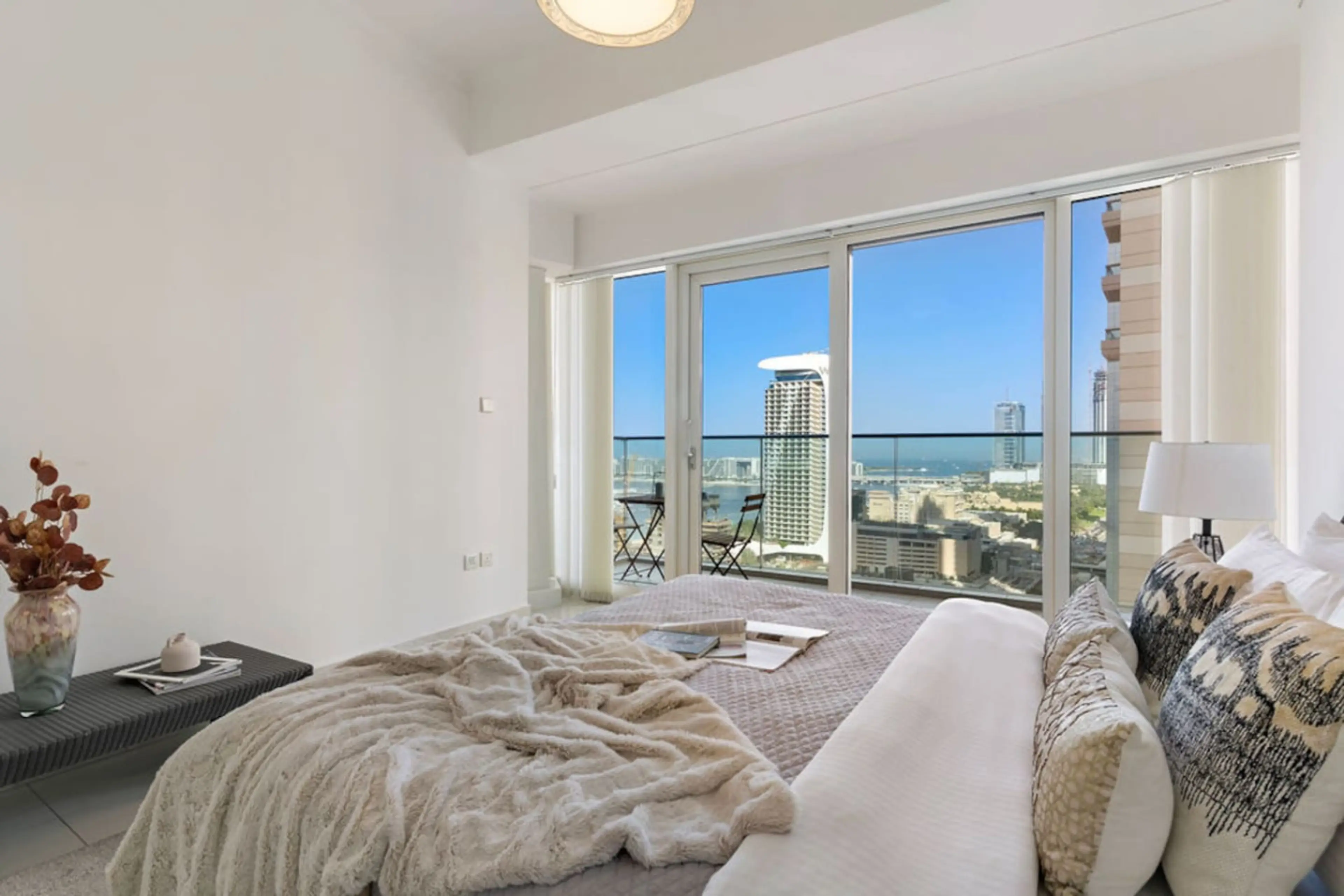 Spacious 1BR in Marina with Sea + Palm views!